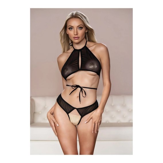 Allure SM komplet top i majtki z koronkowymi paskami czarny S/M