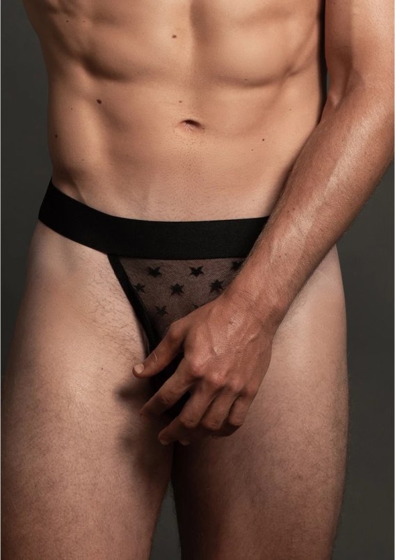 Allure Star LXL Przezroczyste stringi męskie z motywem gwiazd i otwartym tyłem