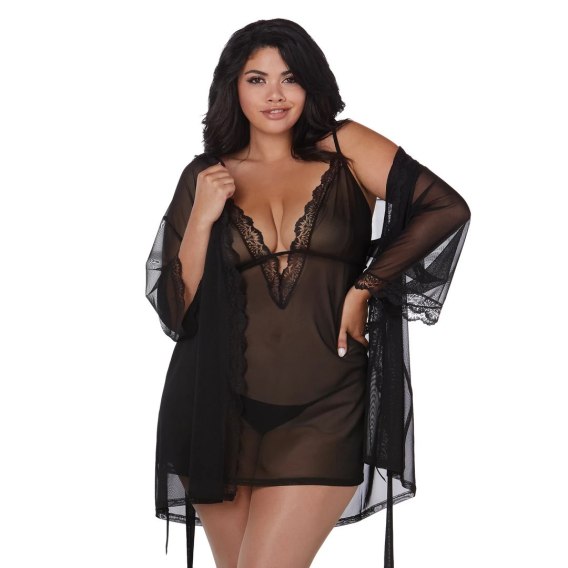 Dreamgirl Koszulka i szlafrok elastyczna siateczka 2XL czarna