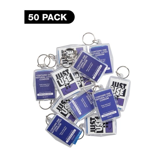Produkt polecany jako praktyczny gadżet, upominek na imprezy czy element profilaktyki zdrowotnej. Zestaw zawiera 50 sztuk brelokow z jedną prezerwatywą EXS w każdym z nich.