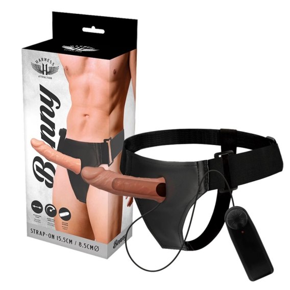 Harness Attraction Benny Hollow System z Wibratorem 15 cm beżowy
