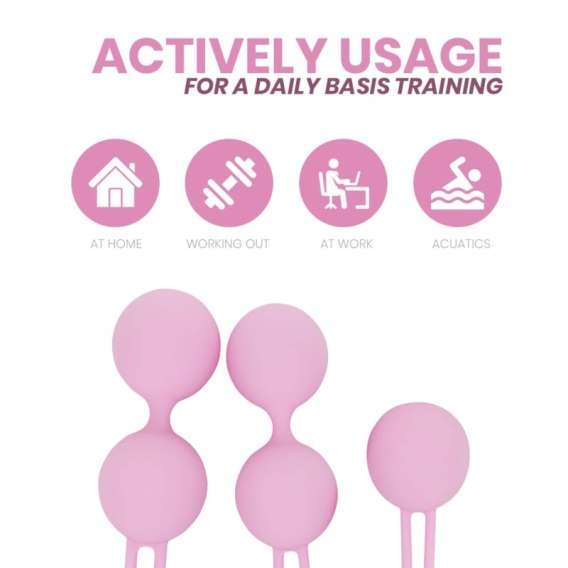 Intimichic Pelvis Health II to komplet trzech ergonomicznych trenażerow w rożnych rozmiarach i wagach, pozwalających na progresywny trening dopasowany do indywidualnych potrzeb. Każdy element wykonano z najwyższej jakości, hipoalergicznego silikonu medycznego, wolnego od ftalanow. Dla wygody użytkowania zastosowano elastyczne połączenia oraz trwały przewod silikonowy ułatwiający ekstrakcję. Zestaw zapakowany jest w stylowe, eleganckie pudełko, w ktorym znajdziesz także satynową torbę oraz instrukcję obsługi w kilku językach.