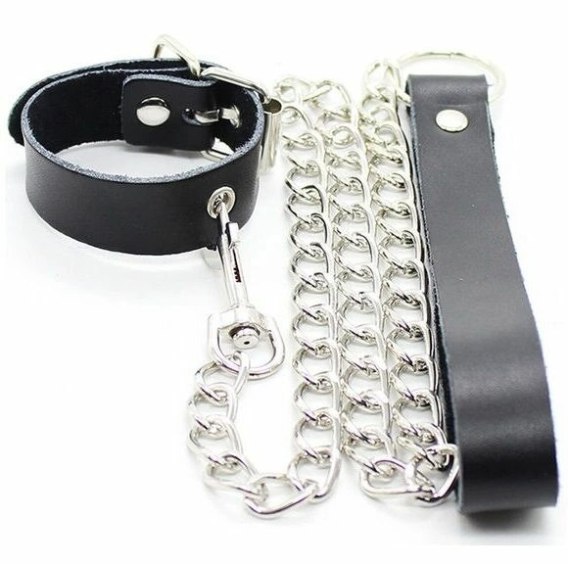 Wykonany z trwałej, wysokogatunkowej skory, kołnierz zapewnia komfort użytkowania oraz łatwość czyszczenia. Metalowy łańcuch charakteryzuje się dużą odpornością na odkształcenia i idealnie wspołgra z regulowanym paskiem, pozwalając dopasować zestaw do indywidualnych potrzeb. Całość dopełnia poręczna rączka, ułatwiająca kontrolę i obsługę.