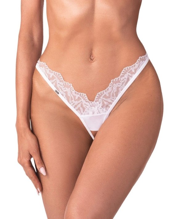 Obsessive Arrowel String S/M biały z transparentną koronką