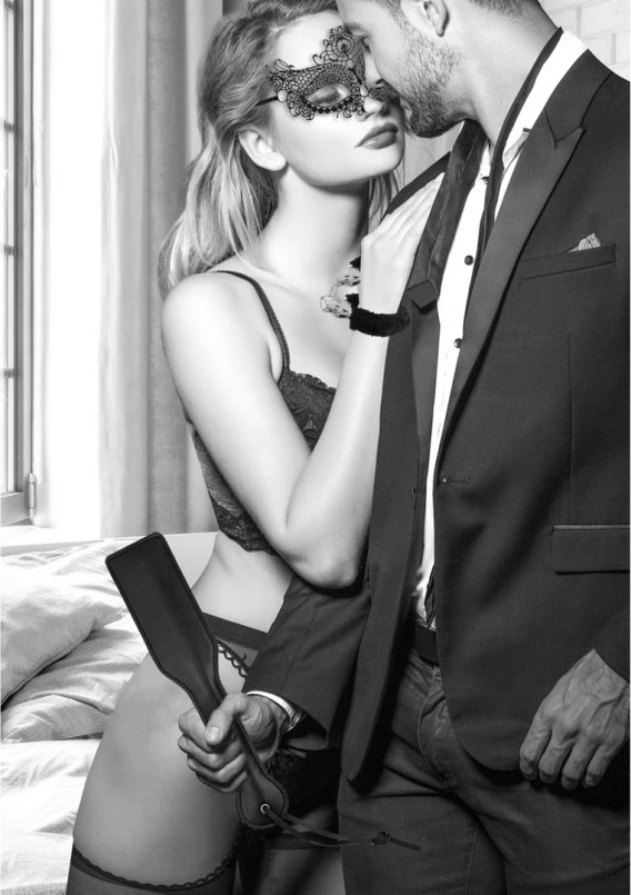 Ouch! by Shots Zestaw Bondage #3 - kajdanki, maska, łopatka, czarny