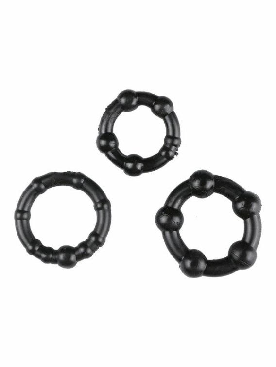 Każdy pierścień w zestawie charakteryzuje się indywidualną strukturą powierzchni z wypustkami, co podnosi walory użytkowe produktu. Zrożnicowane rozmiary pozwalają na wybor najbardziej odpowiedniego modelu, dostosowanego do preferencji użytkownika.