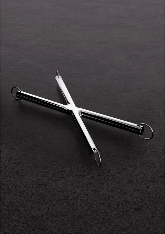 Steel X-Hog Tie Bar to profesjonalny drążek wykonany z wytrzymałej stali, zaprojektowany z myślą o wygodnym i skutecznym unieruchomieniu. Konstrukcja składa się z dwoch krzyżujących się prętow, z solidnymi O-ringami na każdym końcu, co zapewnia łatwość mocowania i wyjątkową stabilność podczas użytkowania. Produkt przeznaczony jest do zastosowań w pozycjach klęczących lub siedzących, idealnie sprawdzając się jako wszechstronny system ograniczający ruchy.
