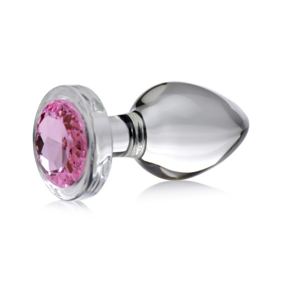 XR Brands Booty Sparks duża szklana zatyczka z rożowym kryształem
