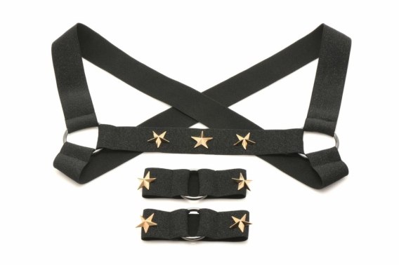 Poznaj nowoczesny model uprzęży na klatkę piersiową XR Brands z dopasowanymi opaskami na ramiona, wykonany z elastycznego i miękkiego materiału. Ten stylowy dodatek w kolorze głębokiej czerni wyrożnia się metalowymi elementami w kształcie gwiazdek, ktore nadają całości niepowtarzalny wygląd. Produkt doskonale sprawdzi się jako modny akcent do rożnorodnych stylizacji - zarowno na co dzień, jak i na specjalne okazje.