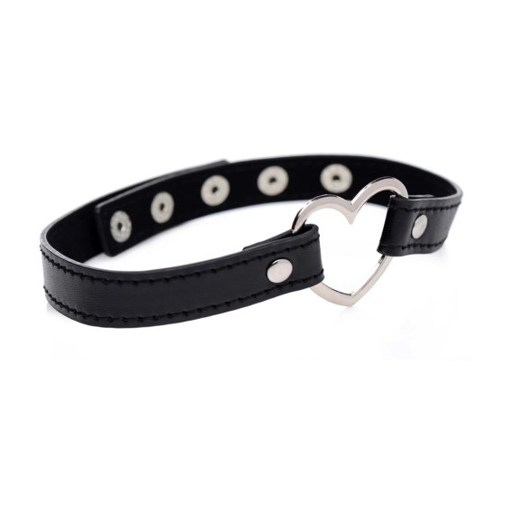 XR Brands Choker Heart - stylowy czarny pasek z chromowanym sercem