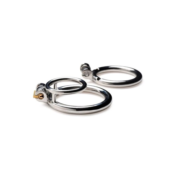 Model wyposażony jest w dwa pierścienie o średnicach do wyboru: 1,75 cala (4,45 cm) oraz 2 cale (5,08 cm), dzięki czemu można dopasować system do indywidualnych potrzeb. Do zestawu dołączony jest złoty klucz, umożliwiający łatwe zakładanie i zdejmowanie produktu. Konstrukcja ze stali nierdzewnej gwarantuje odporność na działanie wilgoci, a nieporowata powierzchnia ułatwia utrzymanie higieny - pierścienie można wygotować lub czyścić dedykowanymi środkami.