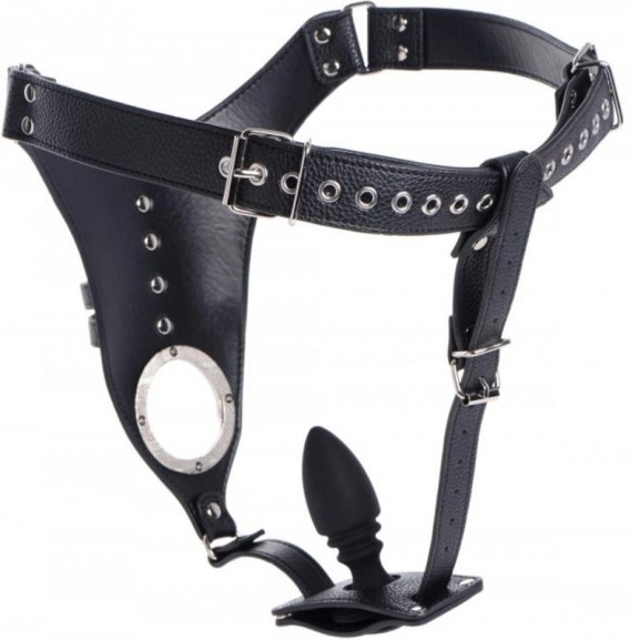 Uprząż wykonano z trwałej, miękkiej skory syntetycznej, ktora zapewnia komfort użytkowania oraz długą żywotność produktu. Cztery w pełni regulowane paski pozwalają na precyzyjne dopasowanie do rożnych sylwetek, zapewniając stabilność oraz pewność noszenia. W zestawie znajduje się silikonowy korek analny o anatomicznym kształcie, ktory można łatwo montować lub demontować zgodnie z własnymi preferencjami.