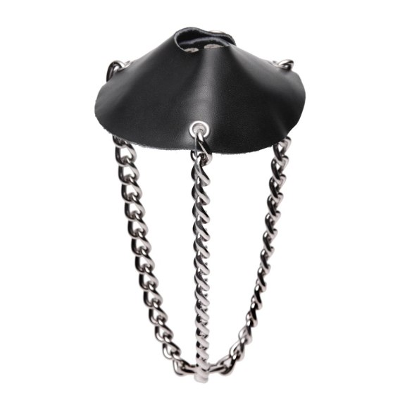 XR Brands Skorzany pas do rozciągania - model z łańcuchami i pierścieniem