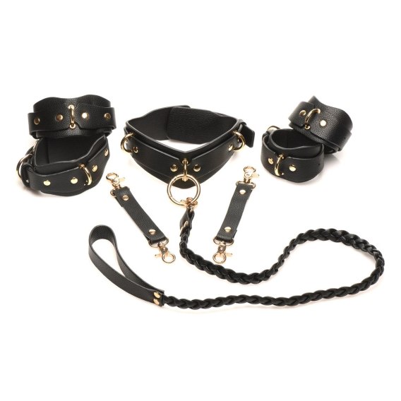 XR Brands Zestaw do krępowania - wegańska skora, złote okucia
