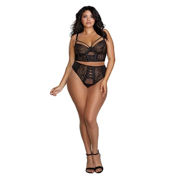 • Dreamgirl Gorset XL z elastycznej siateczki i koronką, czarny