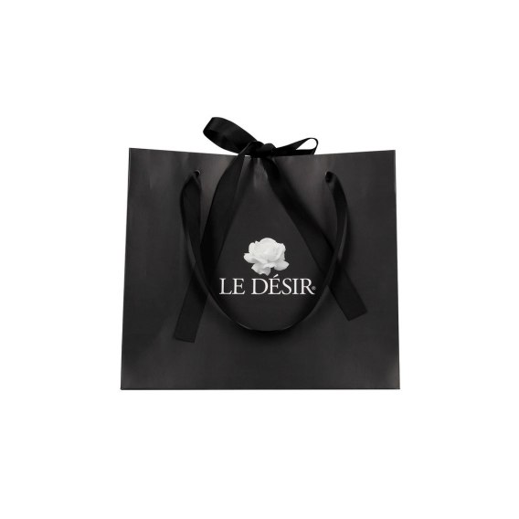 Elegancka torba papierowa marki Le Desir, stworzona z myślą o wyjątkowej prezentacji oraz bezpiecznym przenoszeniu wyrobow premium. Model wyrożnia się wysokiej jakości papierem o gładkiej powierzchni oraz ozdobną czarną satynową wstążką, zakończoną starannie wykonaną kokardą. Doskonała jako opakowanie prezentowe lub stylowe etui na wybrane produkty marki Le Desir.