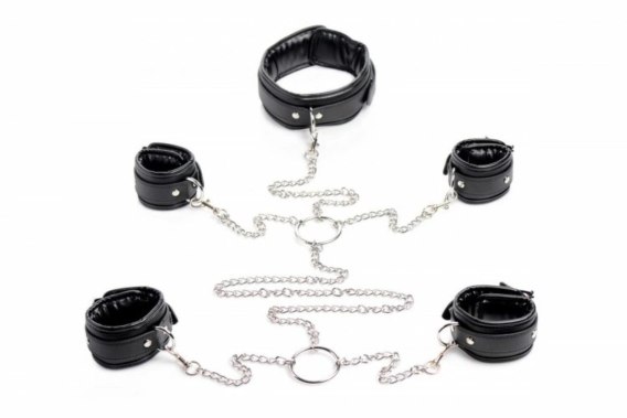 - Komplet: 4 mankiety (nadgarstki i kostki) + obroża