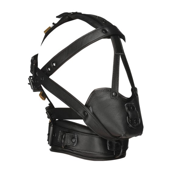 Master Series Skorzany Pas Głowy z Kagańcem - Czarny, Regulowany