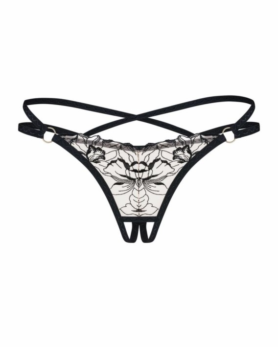 Obsessive Vila Blanes String z otwartą częścią intymną czarny haft