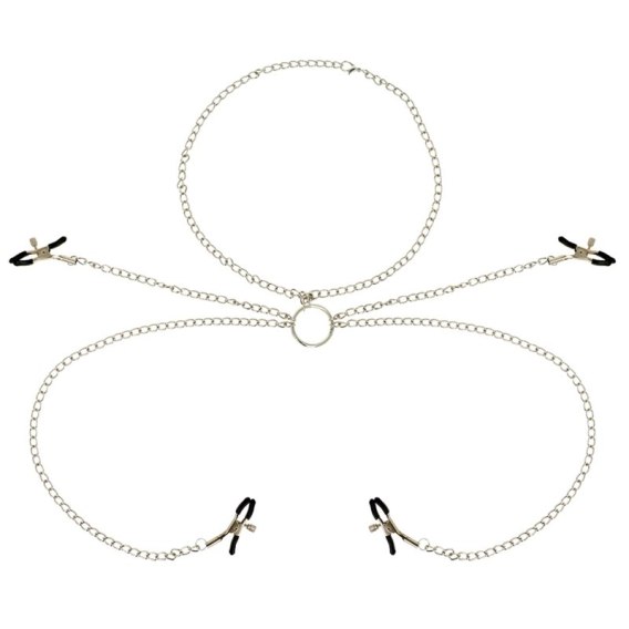 • Ohmama Fetish - zestaw 4 zaciskow z łańcuchem, stal nierdzewna OHMAMA